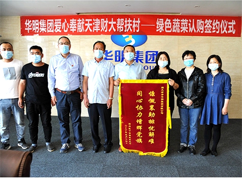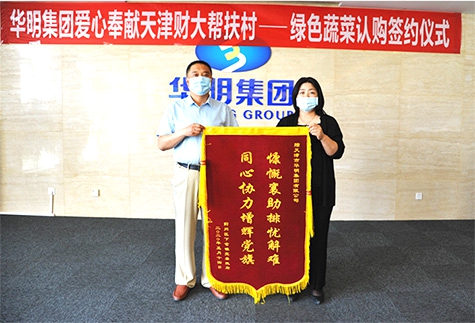 隨后,雙方負(fù)責(zé)人簽訂了蔬菜產(chǎn)業(yè)戰(zhàn)略合作協(xié)議后,沽東村書記為表示感謝,為華明集團(tuán)送上“慷慨襄助排憂解難,同心協(xié)力增輝黨旗”的錦旗。天津財(cái)大幫扶負(fù)責(zé)人也表示,希望以后可以和華明集團(tuán)長期合作發(fā)展。這次認(rèn)購儀式不僅是對農(nóng)業(yè)產(chǎn)業(yè)高效發(fā)展的幫扶,也是對鄉(xiāng)村產(chǎn)業(yè)振興的推動。華明集團(tuán)此次義舉更是大力弘揚(yáng)了集團(tuán)堅(jiān)持“致富思源、富而思進(jìn)”的宗旨,幾十年如一日,以慈善事業(yè)為已任,傾情回報(bào)社會的無私奉獻(xiàn)精神。