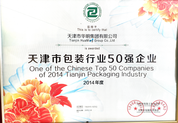 2014年被天津市包裝技術協(xié)會評為天津市包裝行業(yè)50強企業(yè)