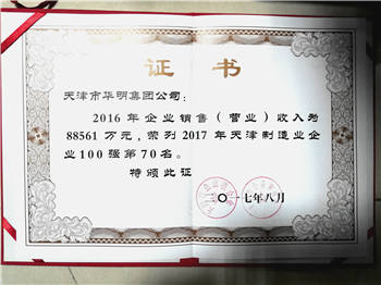 2017年度天津制造業(yè)百強企業(yè)第70名